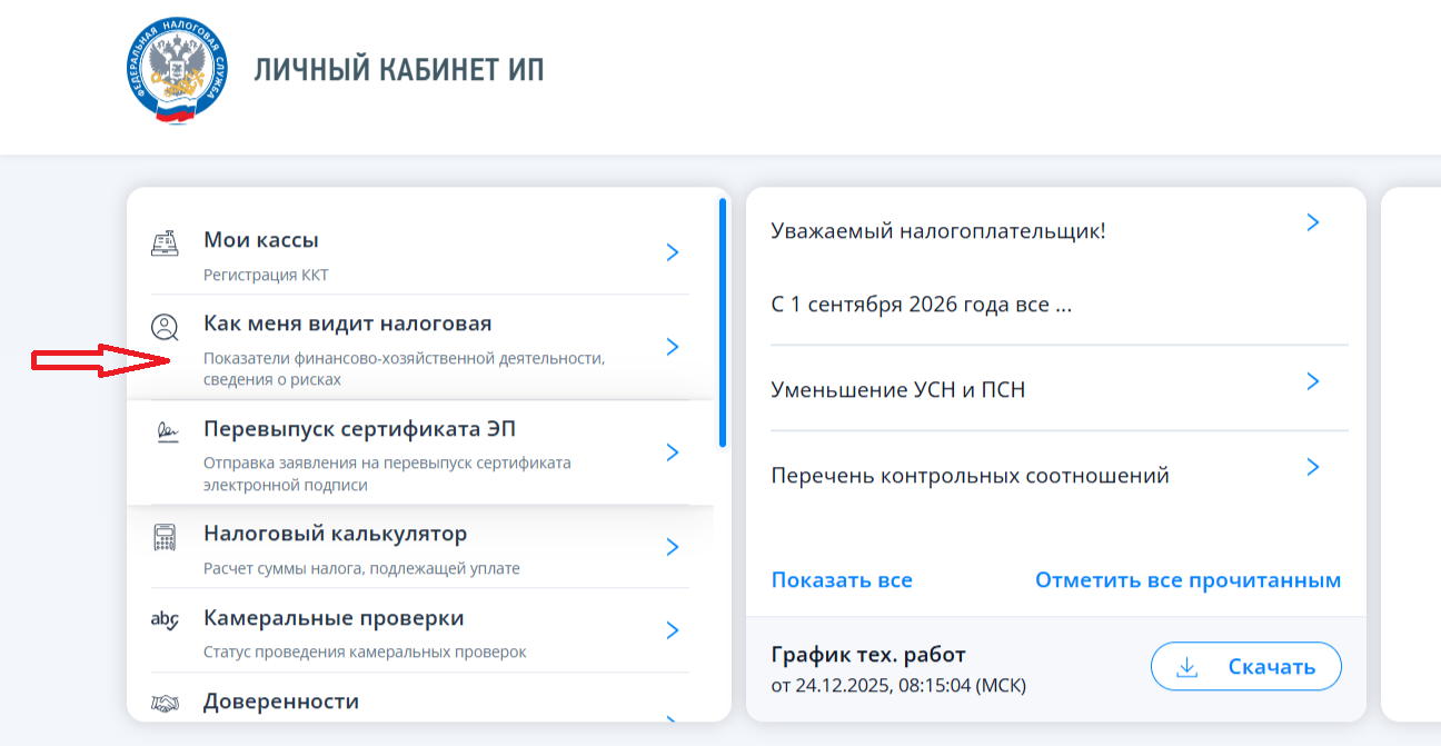 Расположение сервиса в личном кабинете ИП